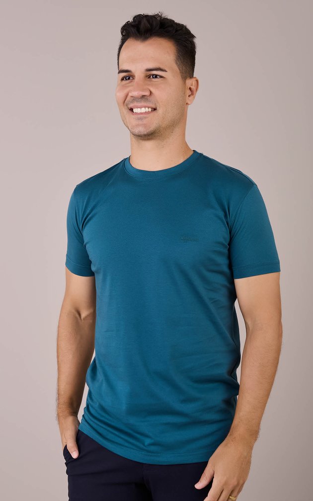 Uma camiseta de visual limpo e sofisticado, criada para o homem que valoriza o básico elevado.