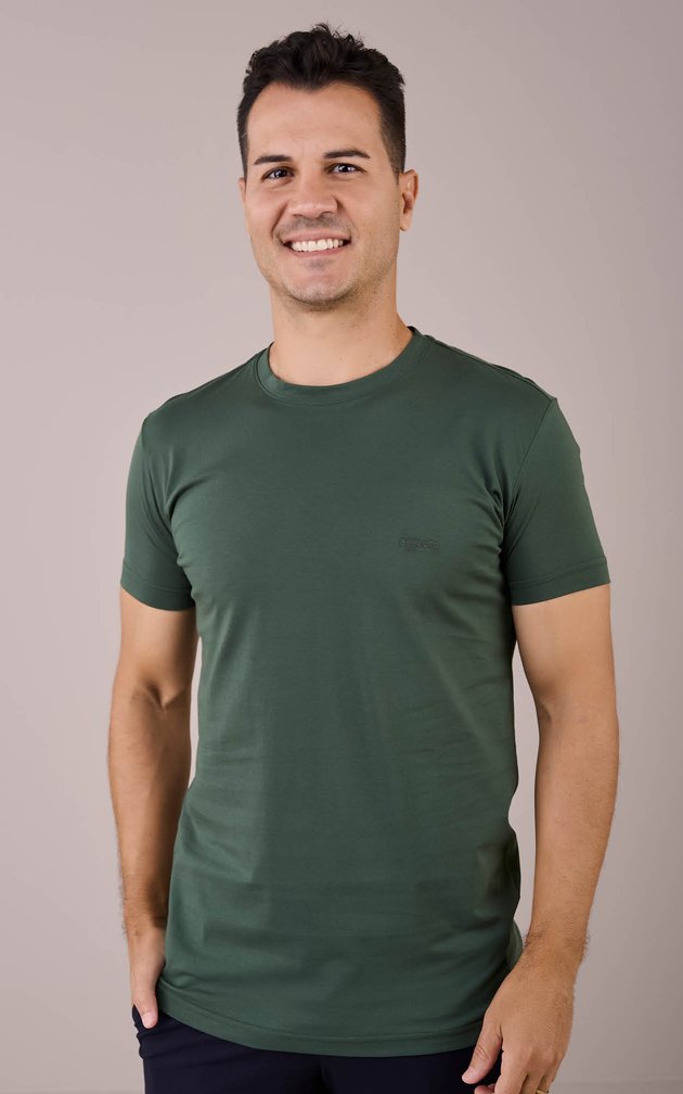 Uma camiseta de visual limpo e sofisticado, criada para o homem que valoriza o básico elevado.