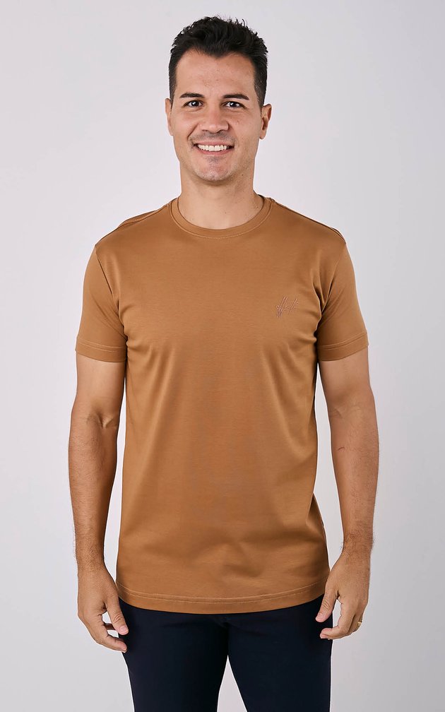 Camiseta gola careca confeccionada em algodão Pima MID, com toque incrivelmente macio e acabamento liso que traduz sofisticação discreta. O corte é levemente ajustado ao corpo, oferecendo um caimento elegante sem perder conforto. Detalhes mínimos, logo bordada e pala no ombro, elevam o visual, mantendo a peça versátil para composições casuais ou mais arrumadas. Uma peça curinga para quem busca presença refinada no dia a dia.