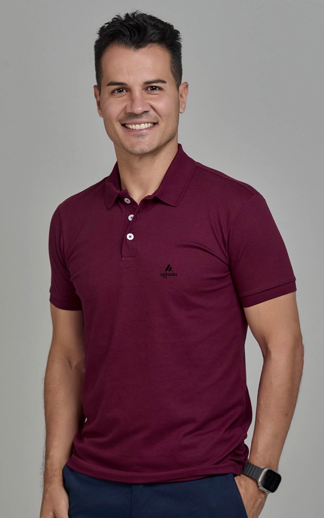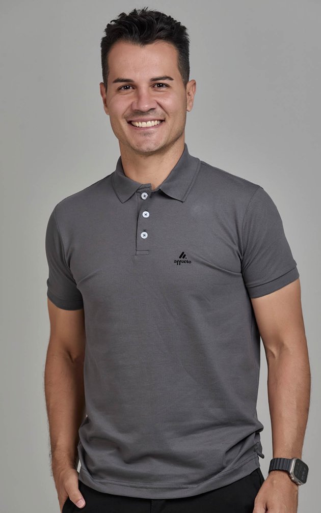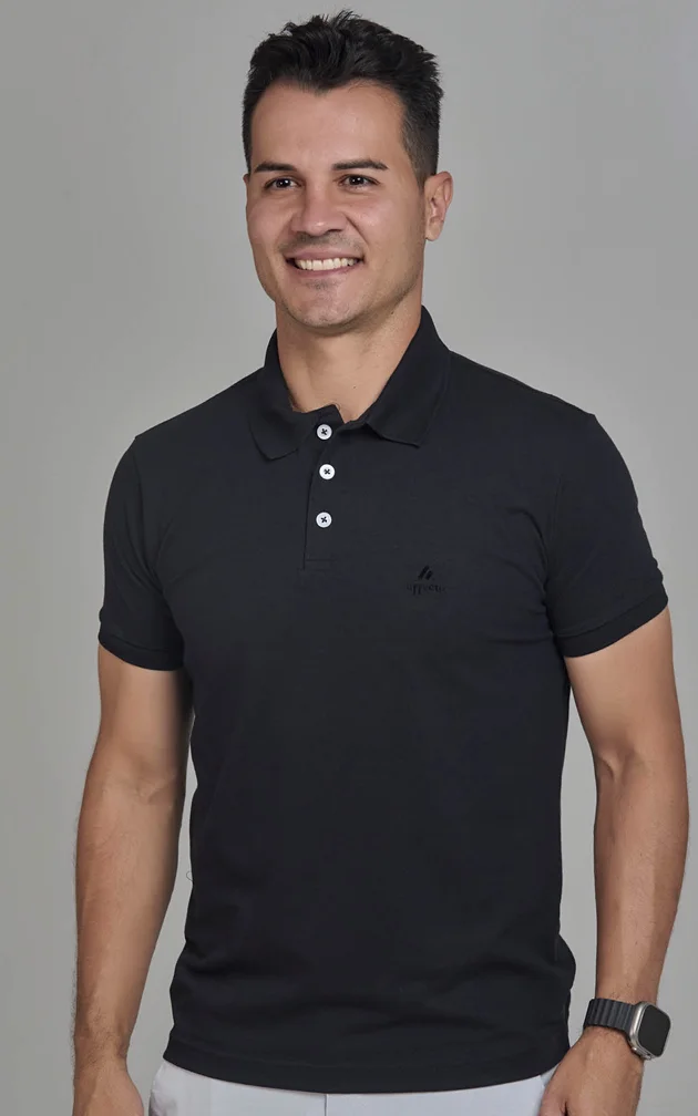 Uma polo essencial que traduz elegância masculina com visual limpo e atemporal.